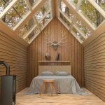 Outside, guests can relax on the spacious deck, enjoy evenings around the fire pit, or gather at the outdoor dining area. Designed to maximize both comfort and connection to nature, this lodge is ideal for longer group stays.